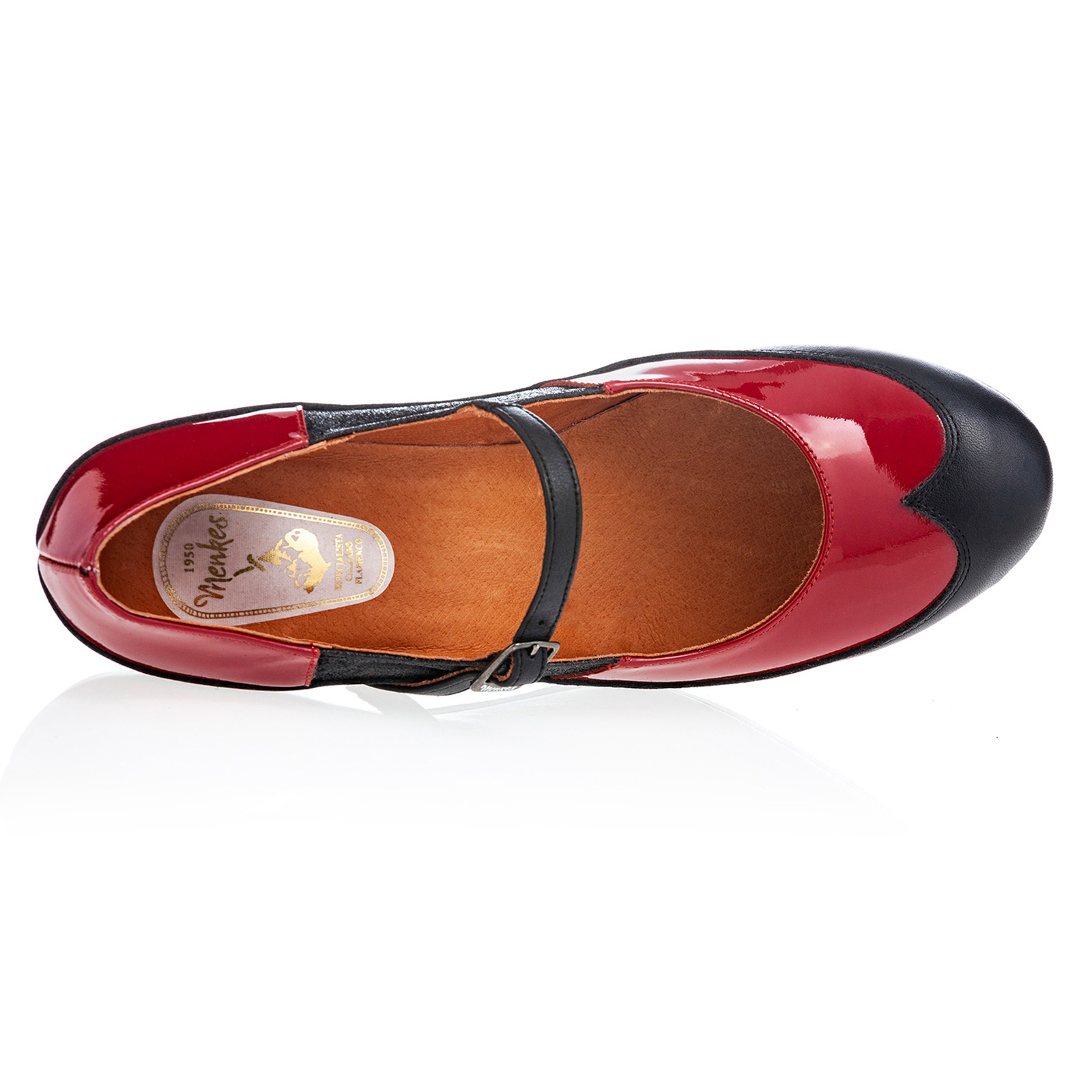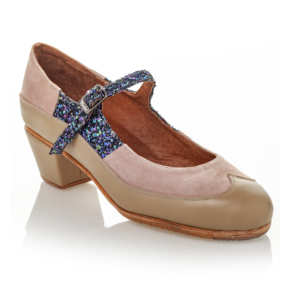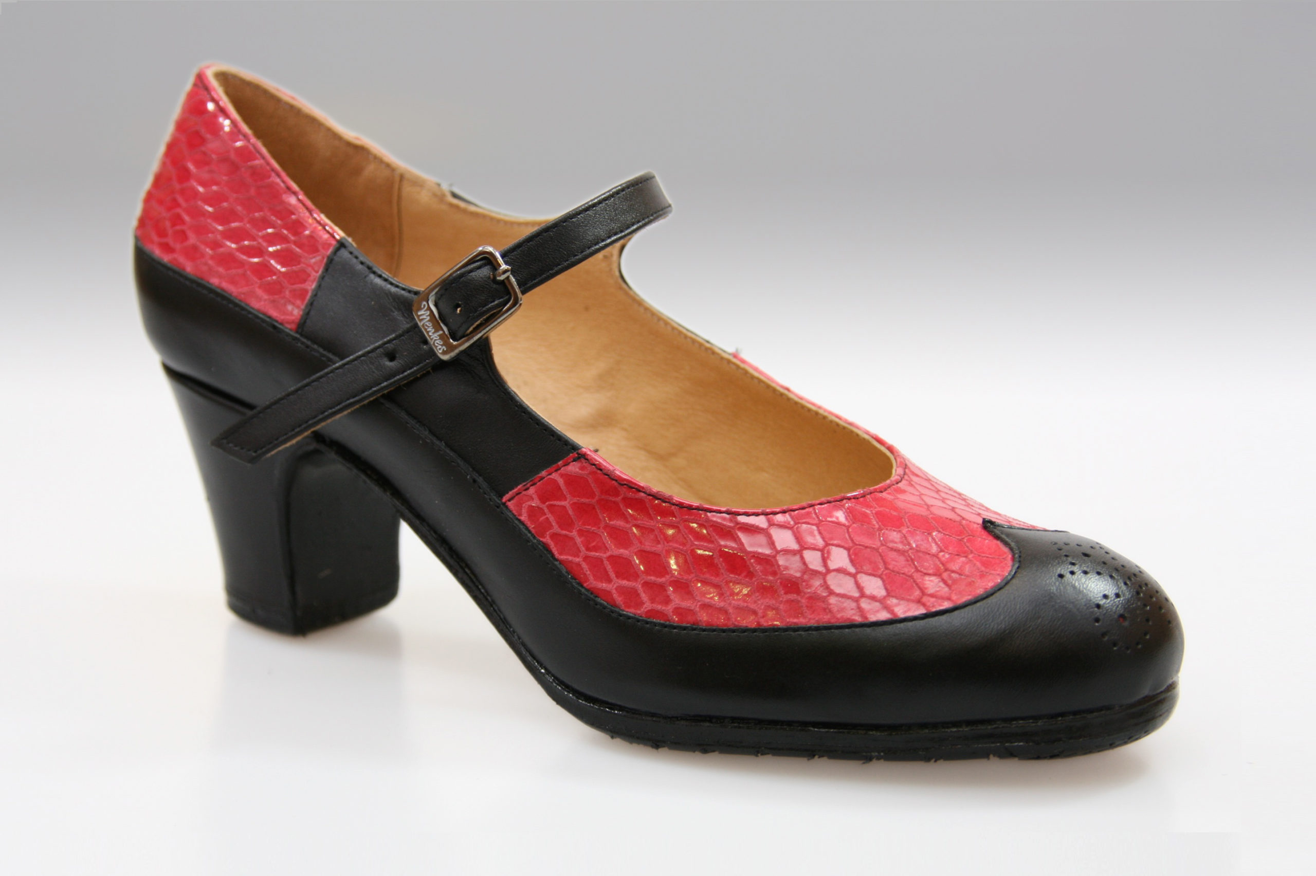 Zapato de flamenco Maestranza con hebilla y combinación de pieles.