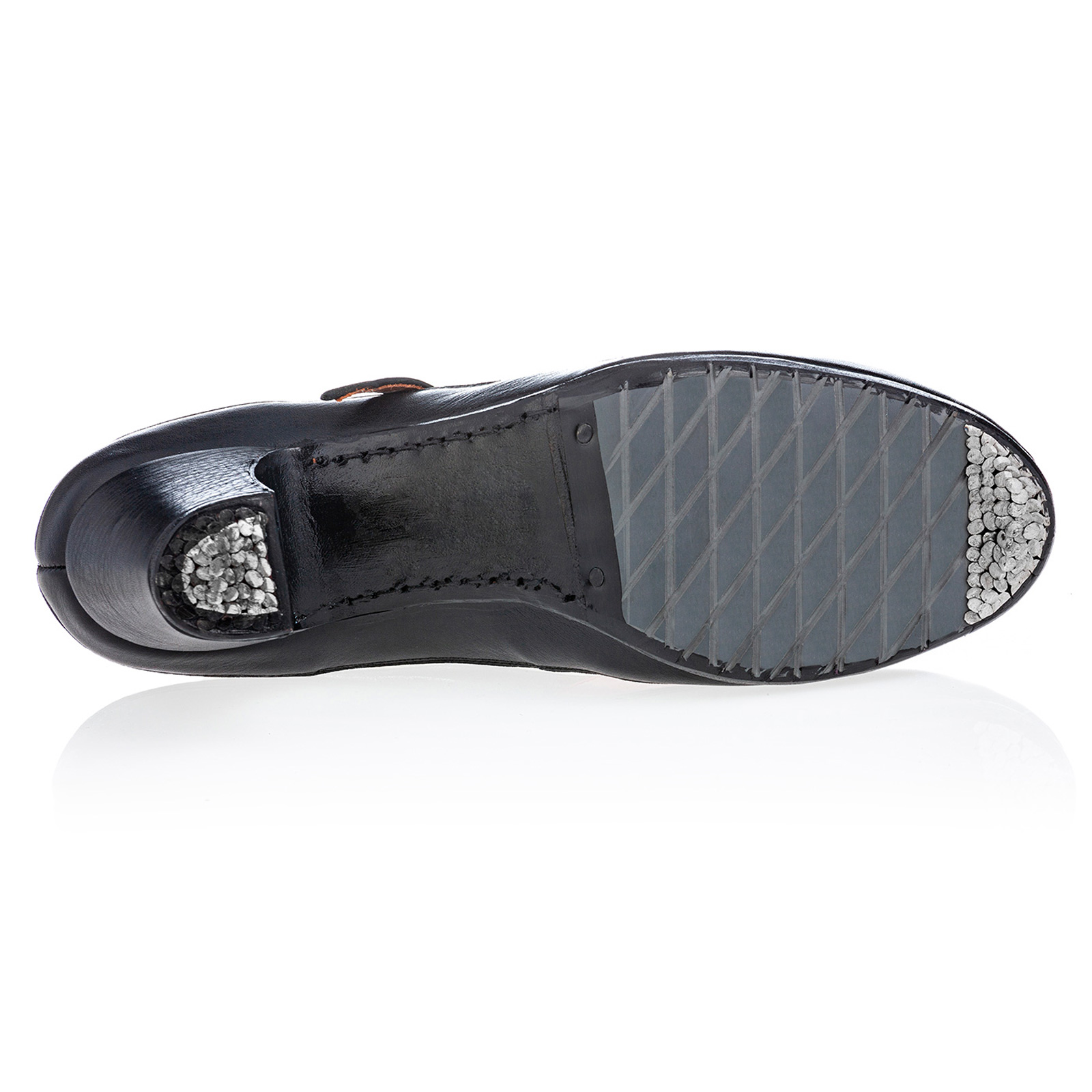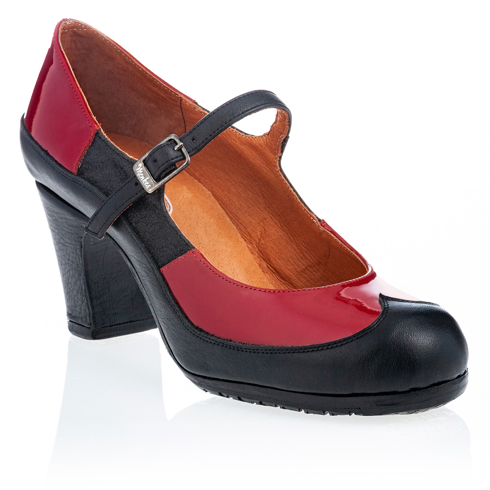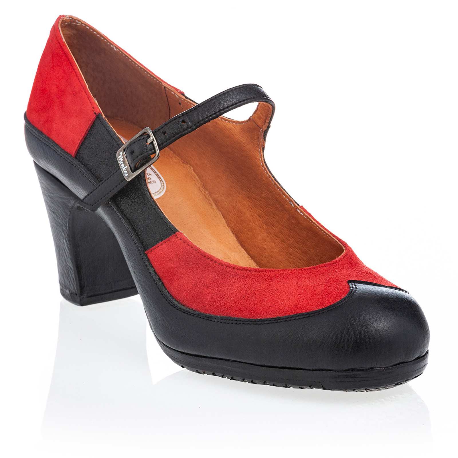 Zapato de flamenco Maestranza con hebilla y combinación de pieles.