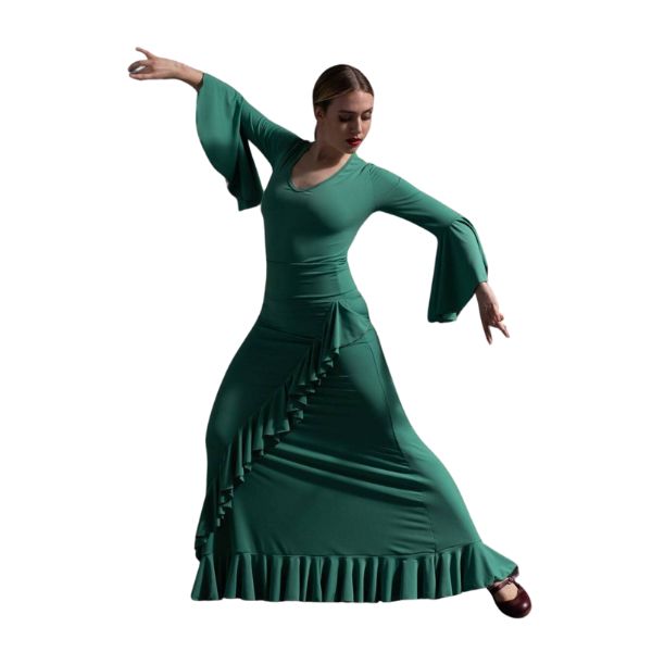 El top Aldea es una prenda destacada que combina elegancia y comodidad, ideal para cualquier bailarina o amante de la moda. Este top presenta un volante grande en las mangas, que añade un toque de sofisticación y movimiento a tu atuendo. El escote está adornado con un vivo, proporcionando un detalle delicado y refinado.