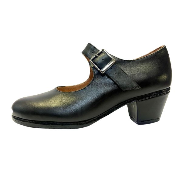 Descubre el zapato de flamenco Candela Prof 1 piel negra B, diseñado para ofrecer un equilibrio perfecto entre estilo, confort y funcionalidad para los bailarines de flamenco.