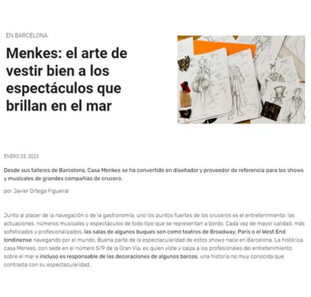 Desde sus talleres de Barcelona, Casa Menkes se ha convertido en diseñador y proveedor de referencia para los shows y musicales de grandes compañías de crucero. Escala BCN